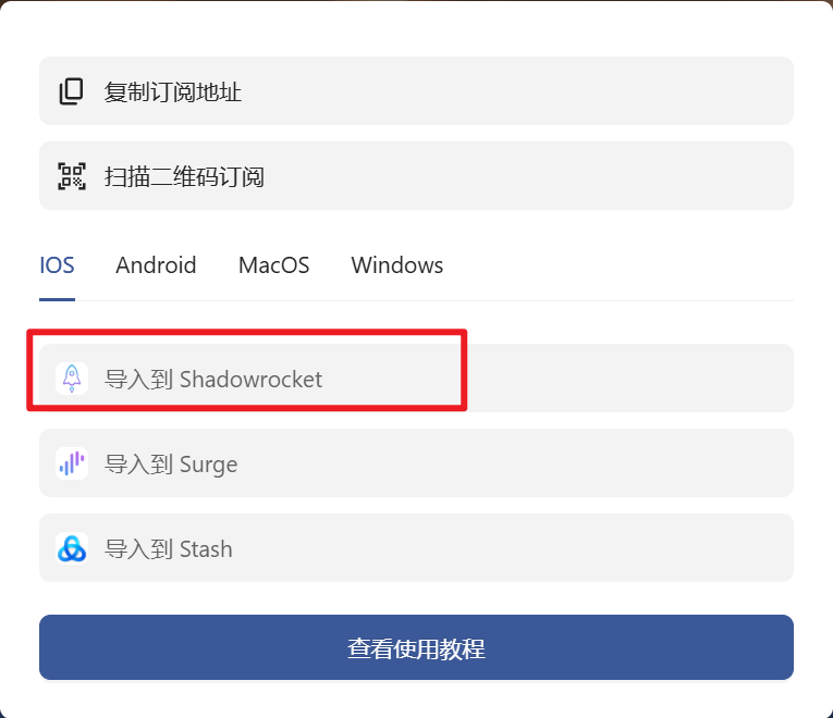 选择咱们使用的 shadowrocket ,然后一般会自动跳转到软件界面,上面会提示是否添加订阅。选择是即可